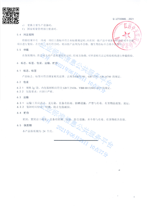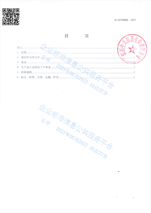 中天骏康牌姜蒜片企标公示