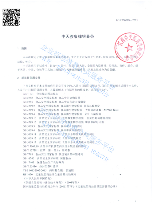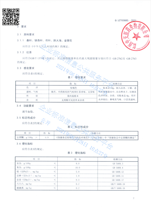 银桑茶企标公示