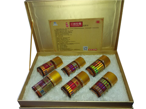 本品是以黄翅大白蚁、黑翅土白蚁、家白蚁为主要原料制成的保健食品,经功能试验证明,具有对化学性肝损伤有辅助保护作用的保健功能。【主要原料】黄翅大白蚁、黑翅土白蚁、家白蚁【功效成份及含量】每100g;蚁酸40mg【保健作用】对化学性肝损伤有辅助保护作用的保健功能【适宜人群】有化学性肝损伤危险者【食用量及食用方法】每日3次,每次2-4粒【规格】0.2g/粒×60粒/瓶×3瓶/盒